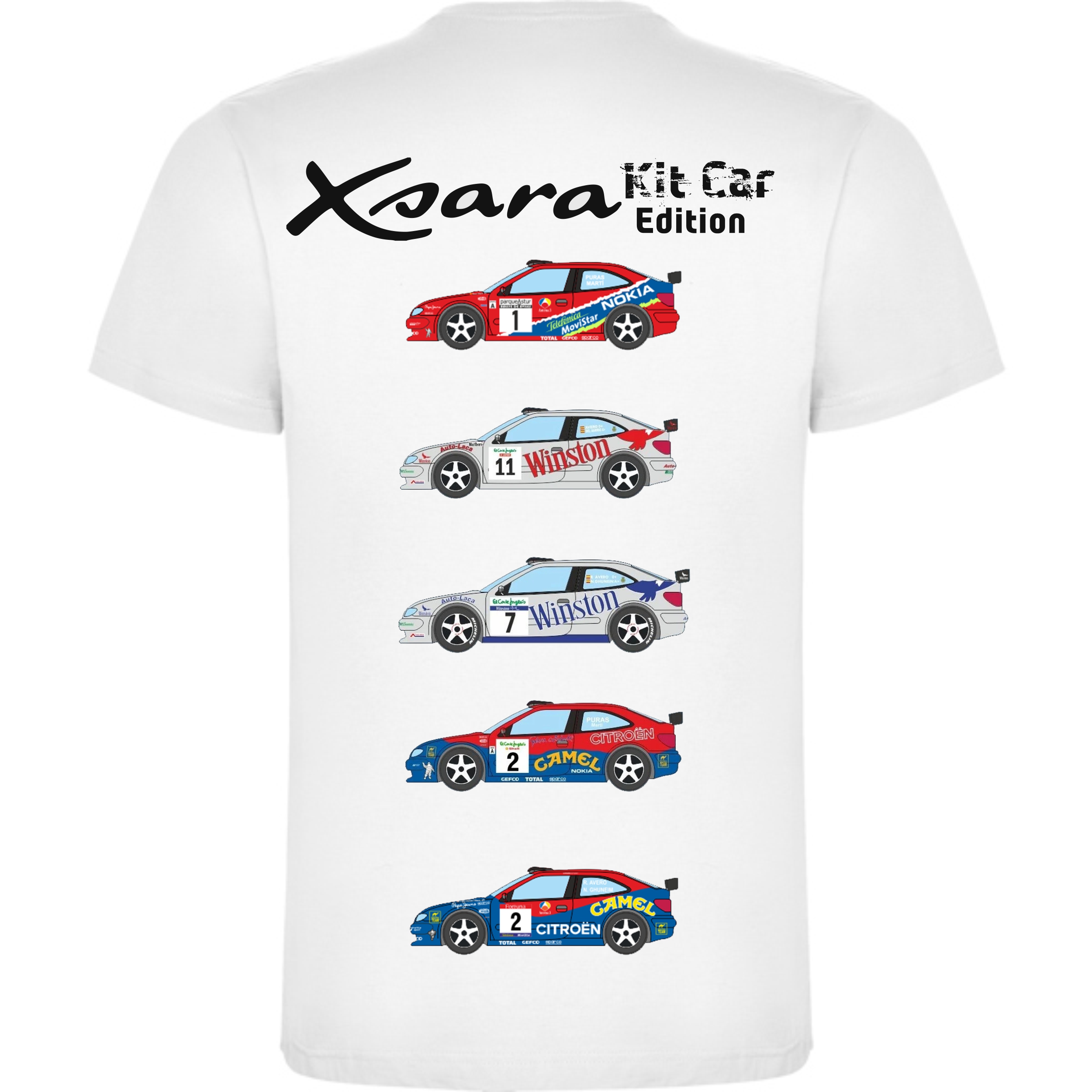 Camiseta conmemoración al Citroen Xsara Kit Car por su paso en Canarias por parte de Jesús Puras, Ricardo Avero