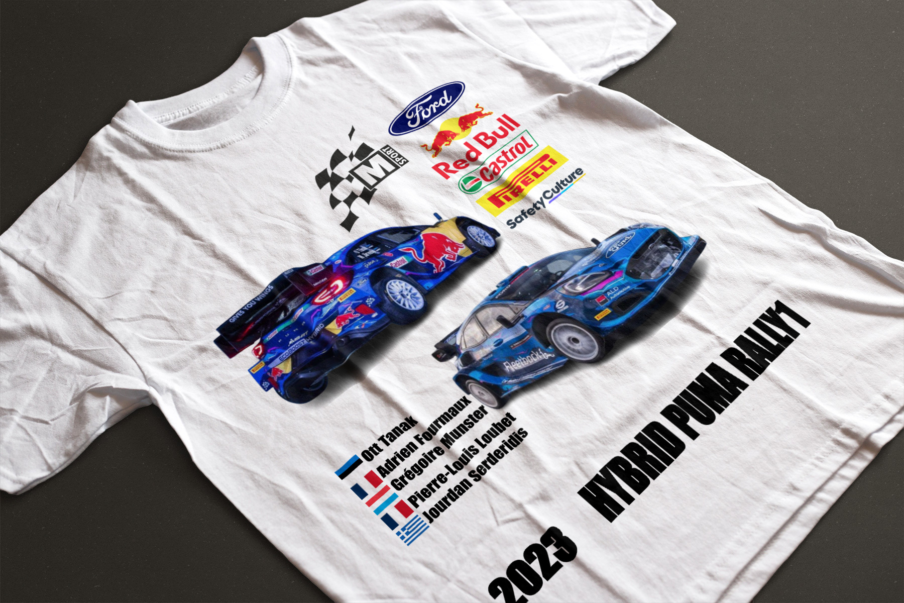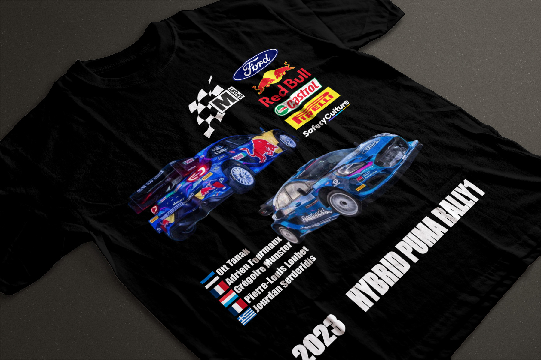 Camiseta del equipo M-Sport Ford World Rally Team 2023 , con el Ford Puma Rally1 Hybrid 2023.