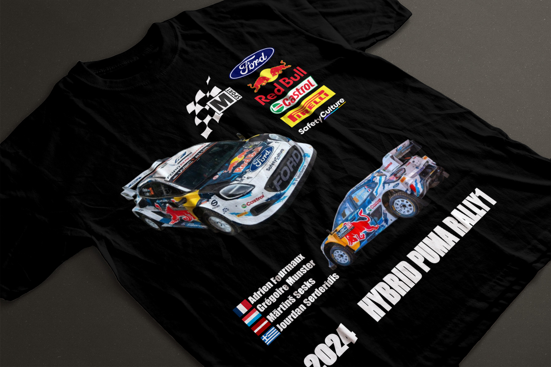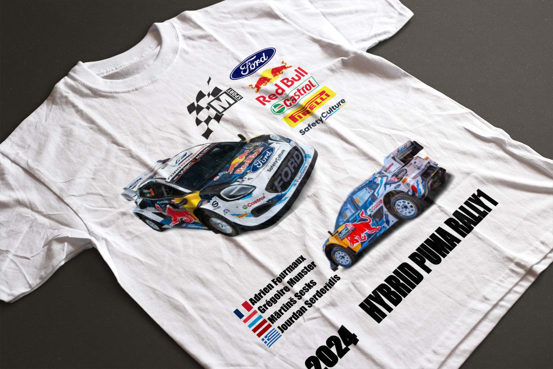 Camiseta del equipo M-Sport Ford World Rally Team 2024 , con el Ford Puma Rally1 Hybrid 2024.