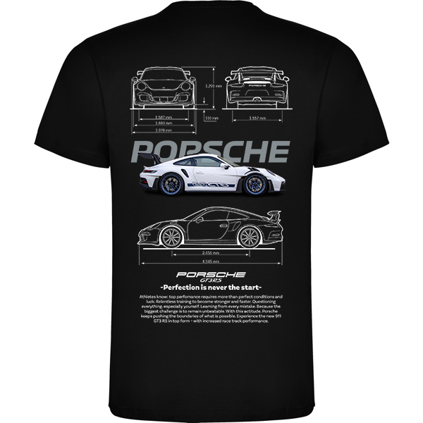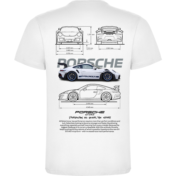 Camiseta del Porsche GT3 RS de color blanco con su descripción.