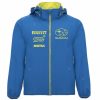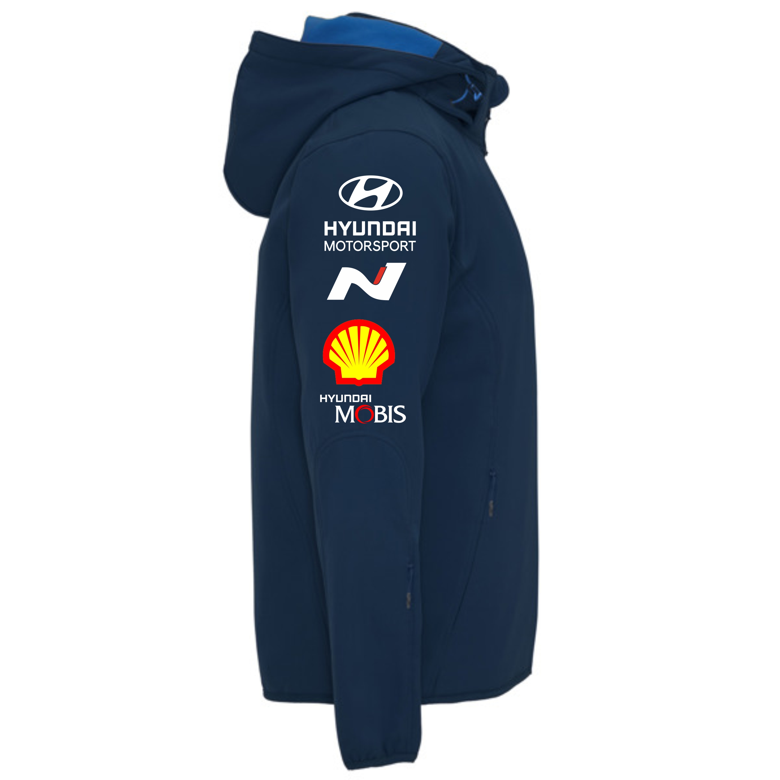 Softshell compuesto de 2 capas con corte deportivo. Cremallera central a contraste con protector de barbilla y tirador. Forro interior en tejido micropolar a contraste. Cuenta con bolsillo exterior en pecho derecho con cremallera invisible con forma diagonal, dos bolsillos exteriores laterales con cremallera invisible, y un bolsillo en manga izquierda. Ribete elástico a tono en puños y bajo. Capucha extraible con forro micropolar a constraste.