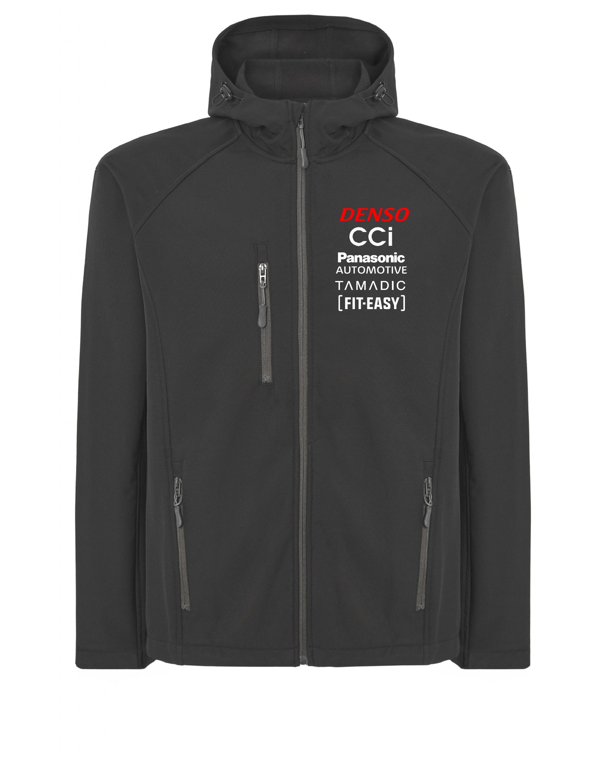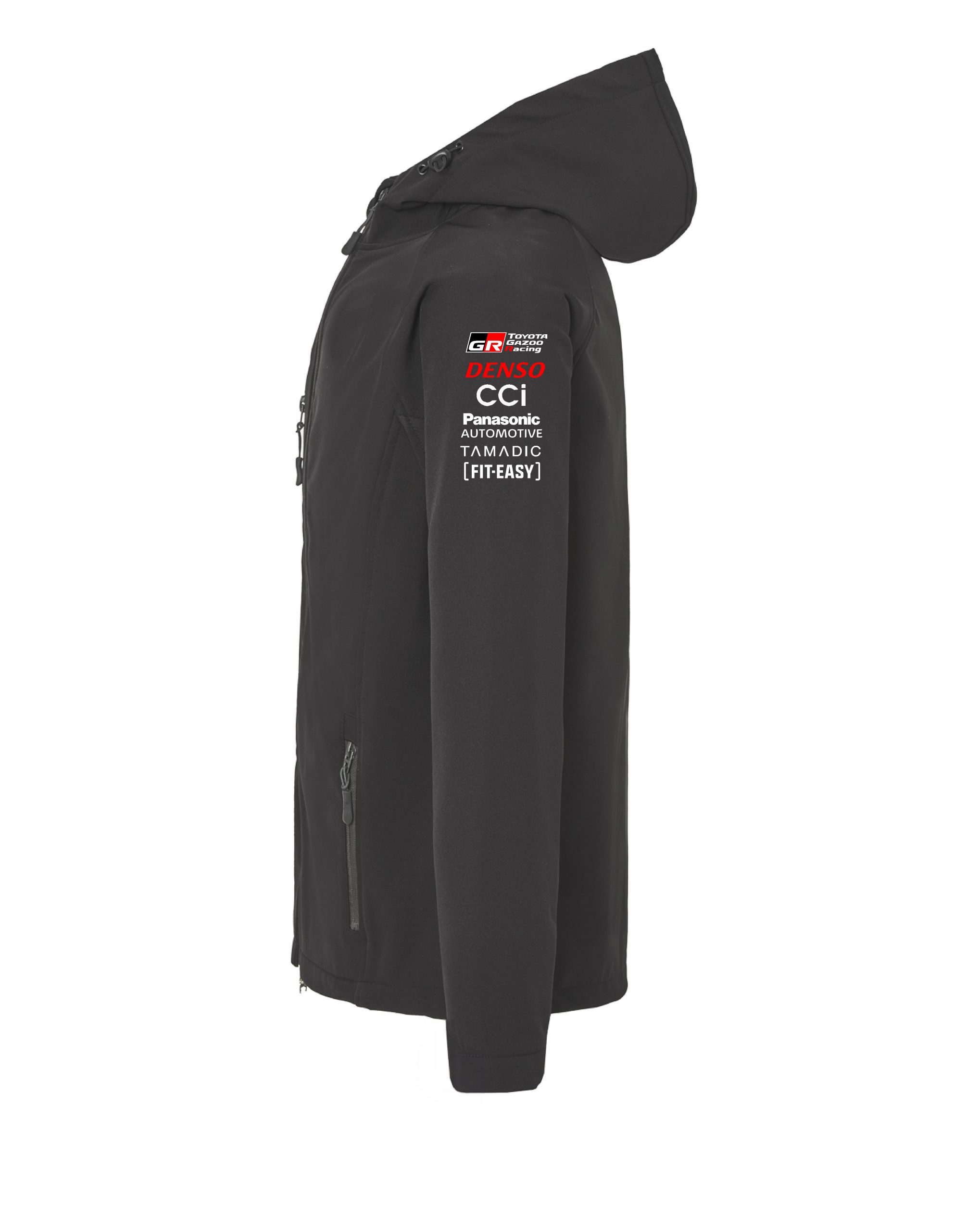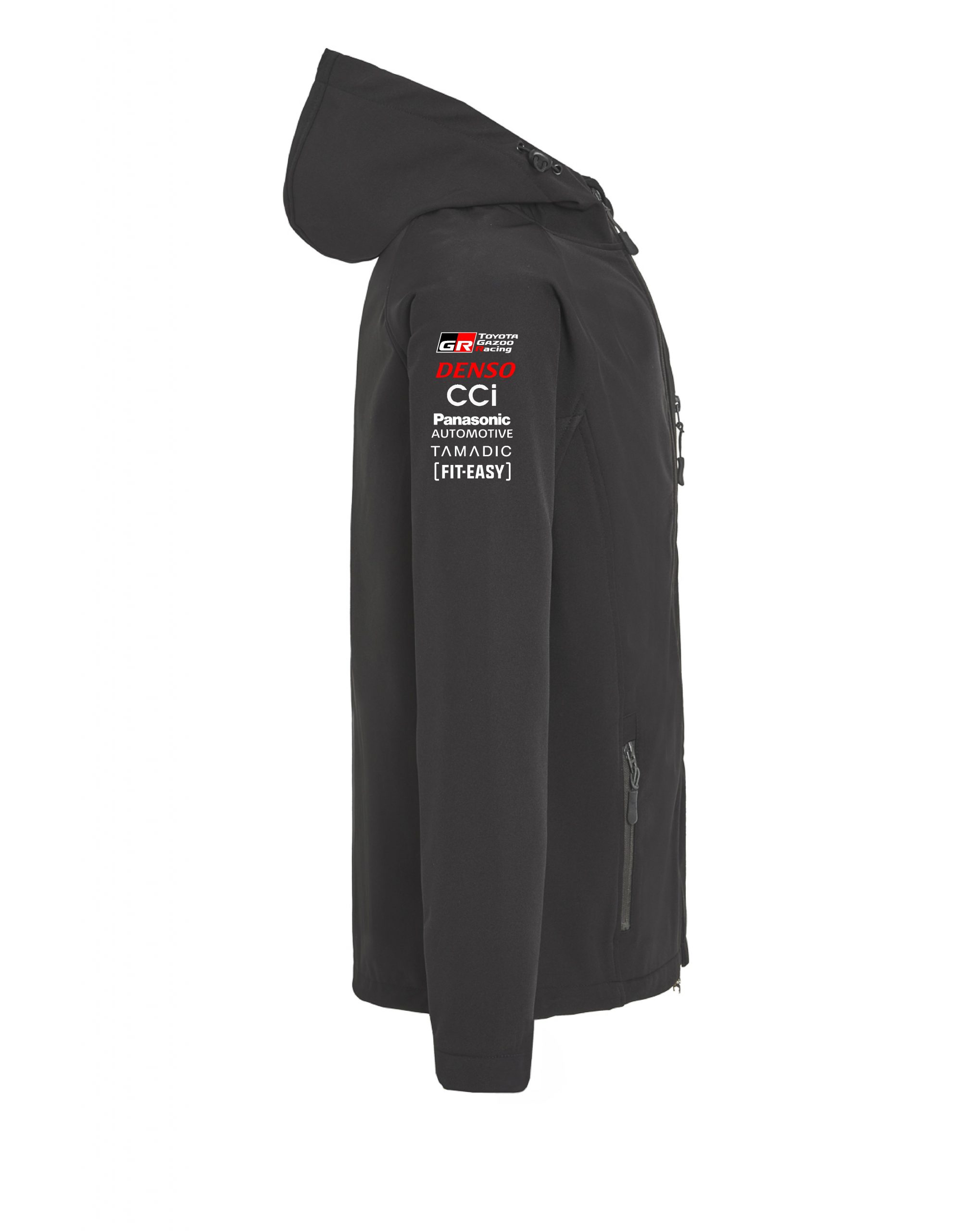 Softshell compuesto de 2 capas con corte deportivo. Cremallera central a contraste con protector de barbilla y tirador. Forro interior en tejido micropolar a contraste. Cuenta con bolsillo exterior en pecho derecho con cremallera invisible con forma diagonal, dos bolsillos exteriores laterales con cremallera invisible, y un bolsillo en manga izquierda. Ribete elástico a tono en puños y bajo. Capucha extraible con forro micropolar a constraste.