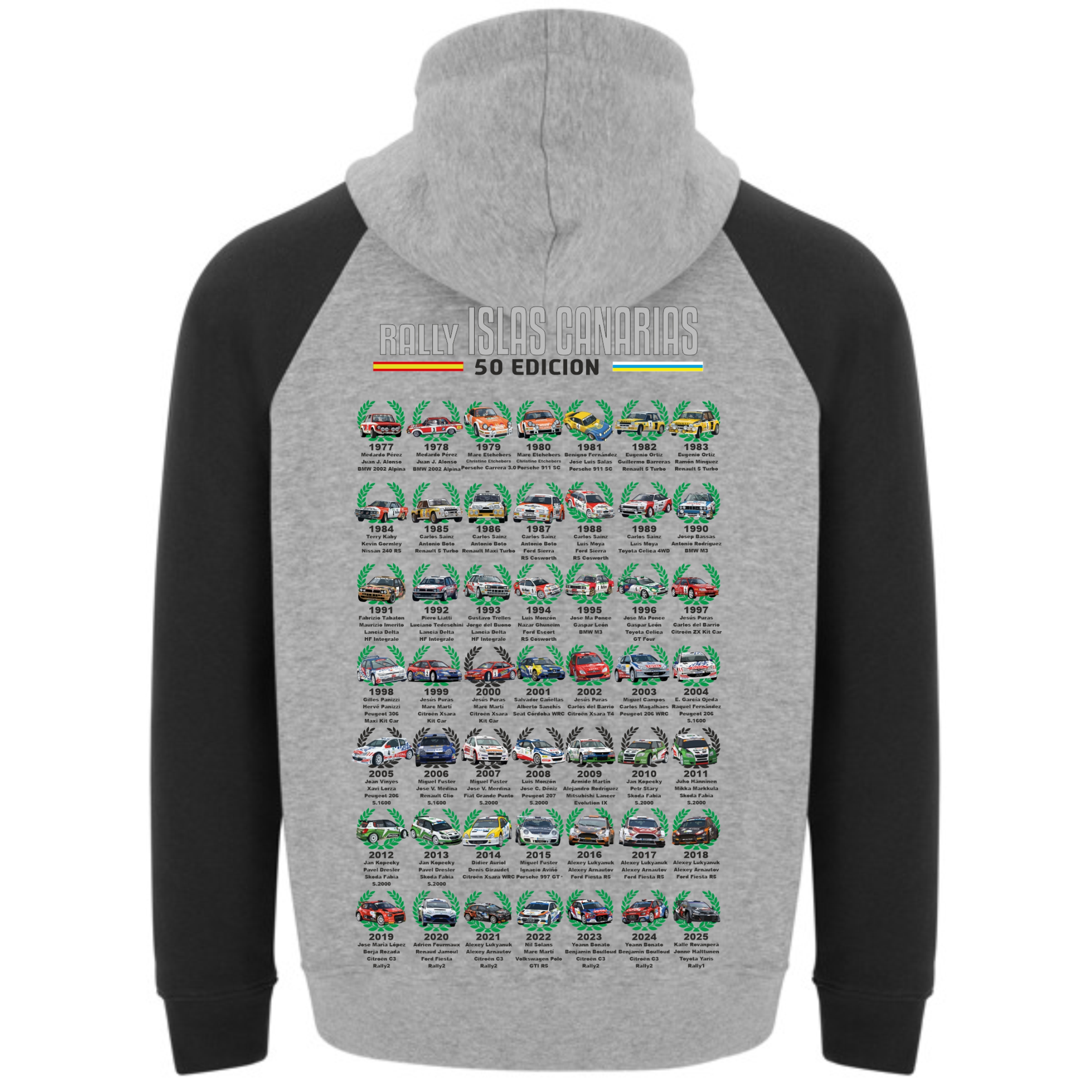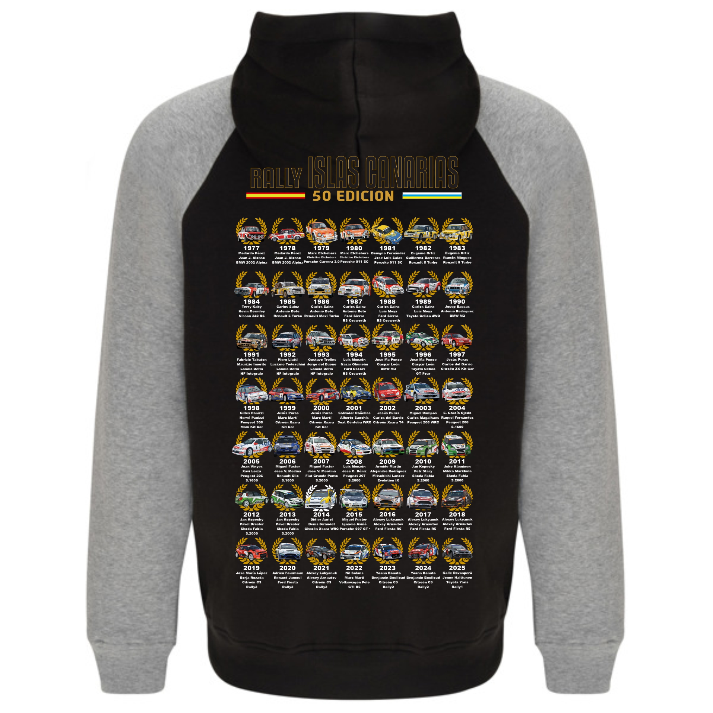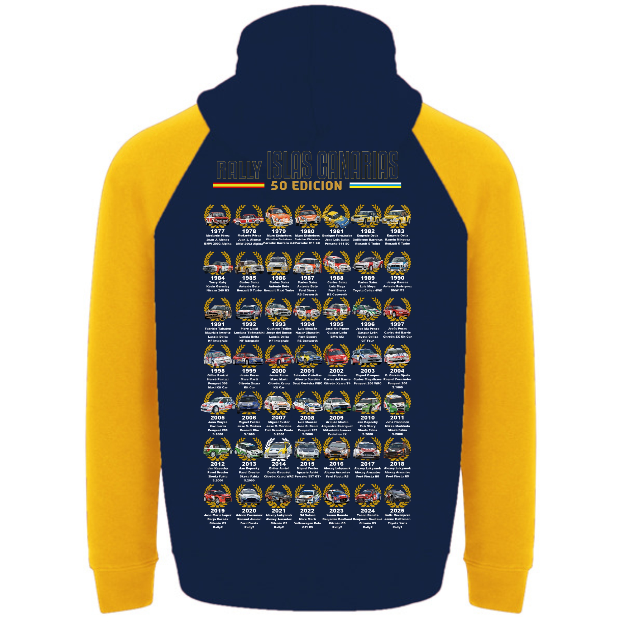 Sudadera diseñada por Canarias Racing Store en conmemoración al 50 aniversario del Rallye Islas Canarias puntuable para el World Rallye Championship.