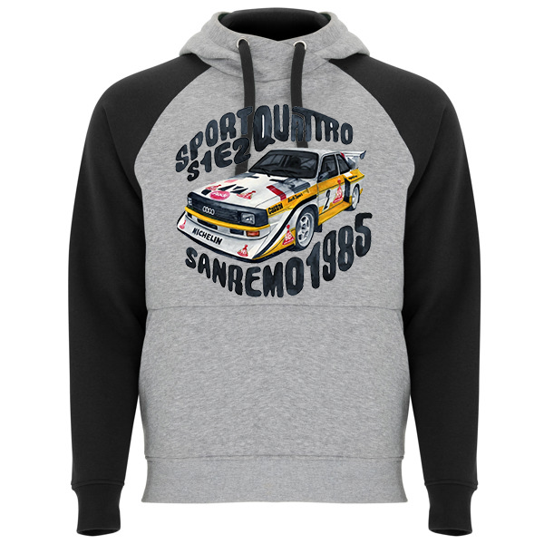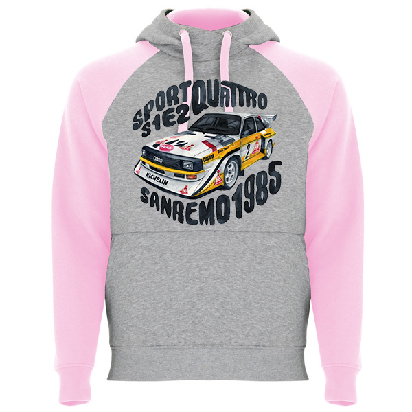 Sudadera bicolor unisex. Capucha con cuello cruzado y ojales metálicos, interior y cordones a contraste. Manga estilo ranglán a contraste. Bolsillo canguro. Puños y bajo con punto canalé con elastano 1×1.