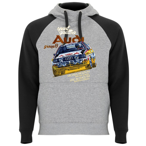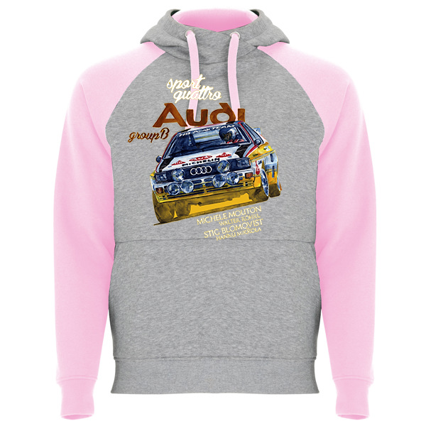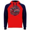 Sudadera bicolor unisex. Capucha con cuello cruzado y ojales metálicos, interior y cordones a contraste. Manga estilo ranglán a contraste. Bolsillo canguro. Puños y bajo con punto canalé con elastano 1×1.