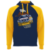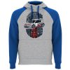 Sudadera bicolor unisex. Capucha con cuello cruzado y ojales metálicos, interior y cordones a contraste. Manga estilo ranglán a contraste. Bolsillo canguro. Puños y bajo con punto canalé con elastano 1×1.